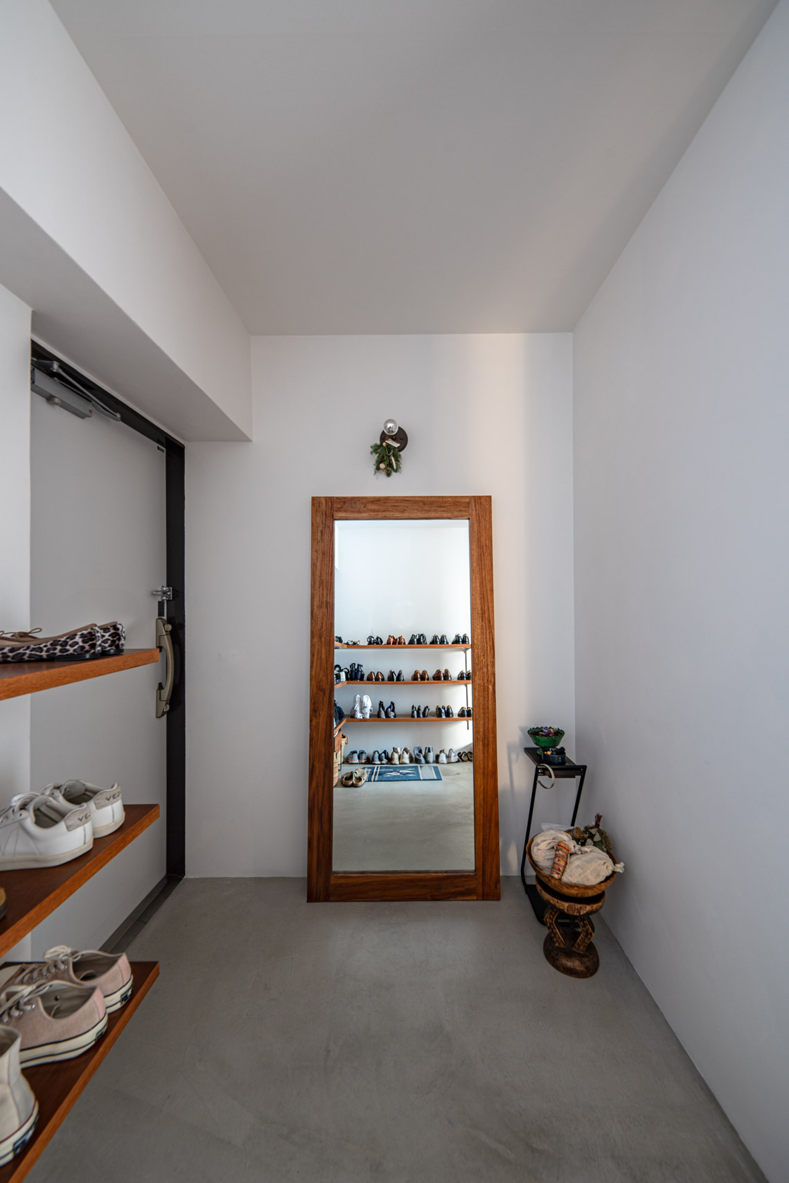 玄関ドア横には、お手持ちの大きな姿見鏡を設置するスペースを設けています。