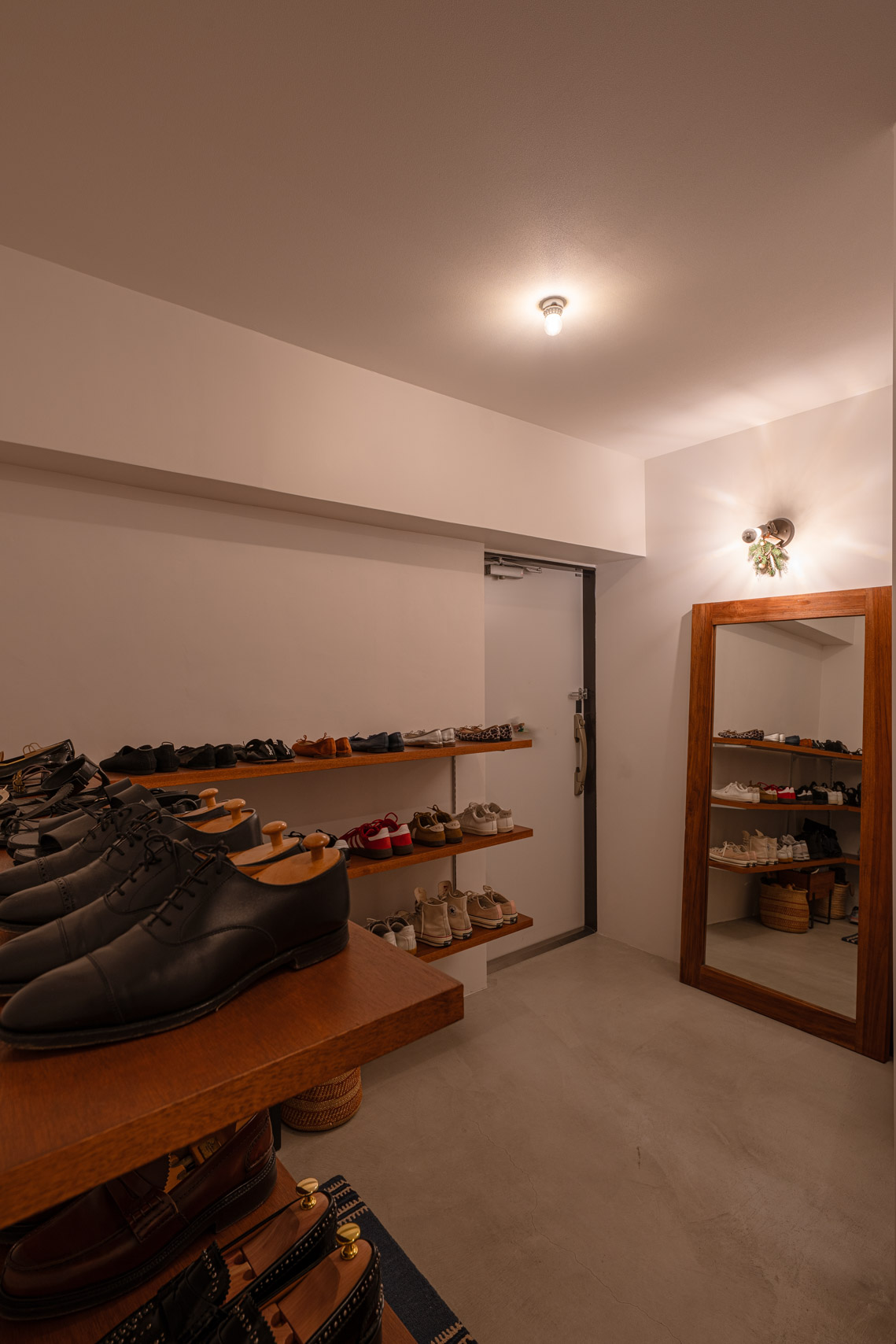 大きな面積を割いた玄関土間のスペースには、圧迫感を軽減するため、下足棚の高さを低く設定。